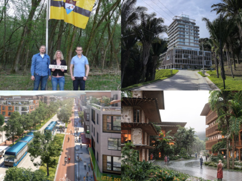 从左上到右下:(i) 微型国家 Liberland,(ii) Prospera,洪都拉斯的一个特区,(iii) 艺术家绘制的建设中的 California Forever,(iv) 艺术家绘制的不丹政府发起的建设中的 Gelephu 正念城市。所有这些都是我所说的“特区”,但代表了与政府接触光谱上的非常不同的点。